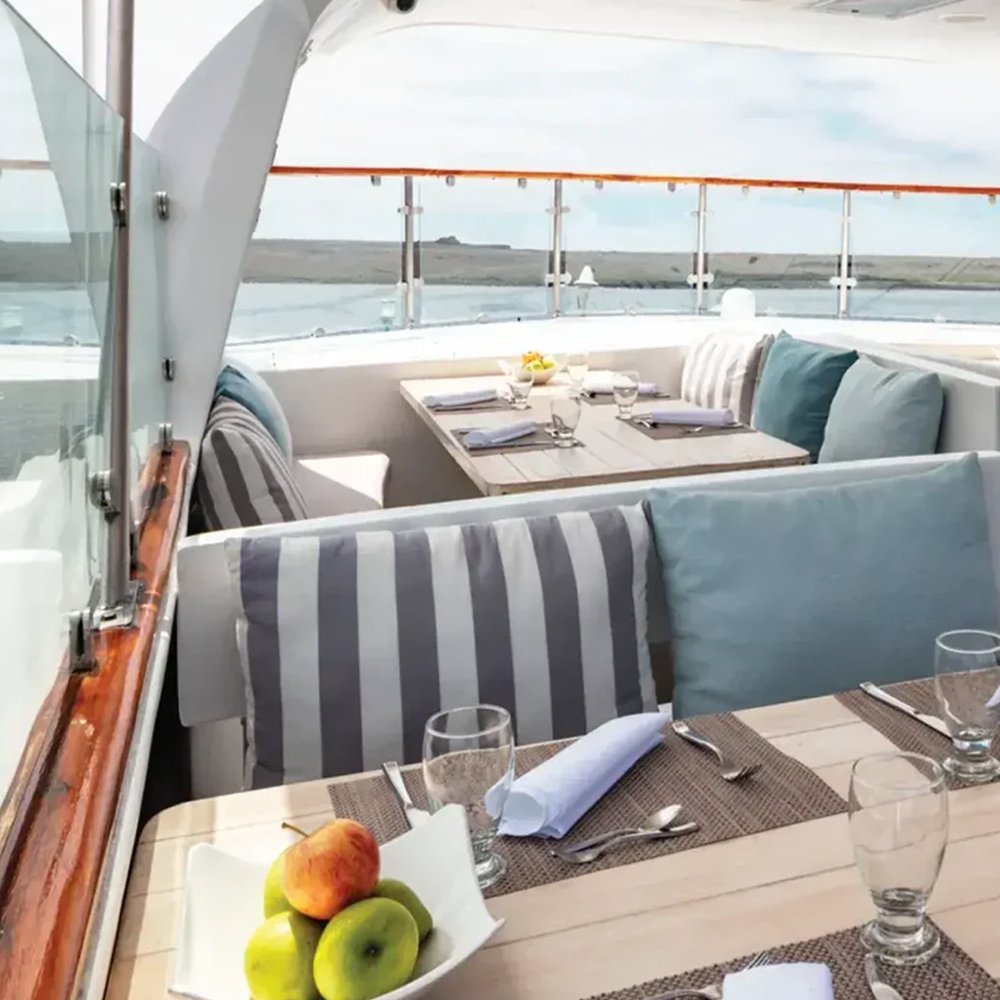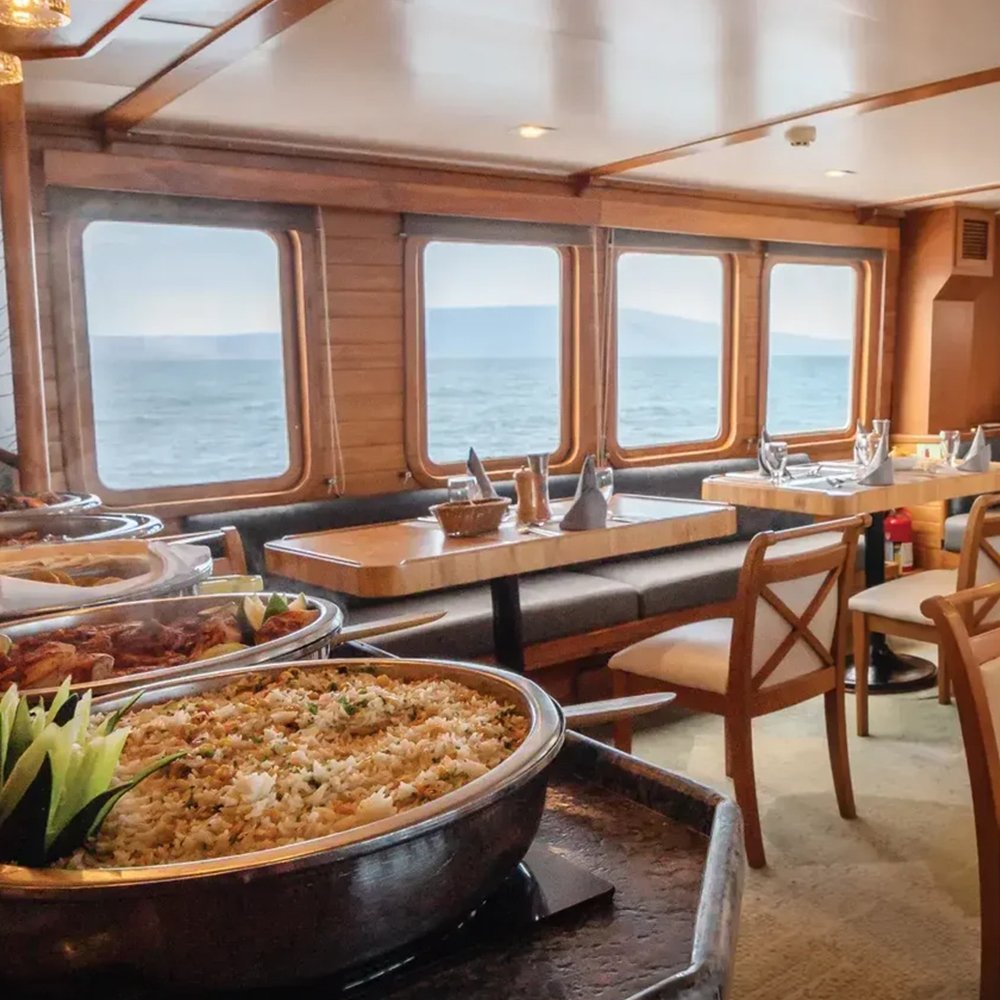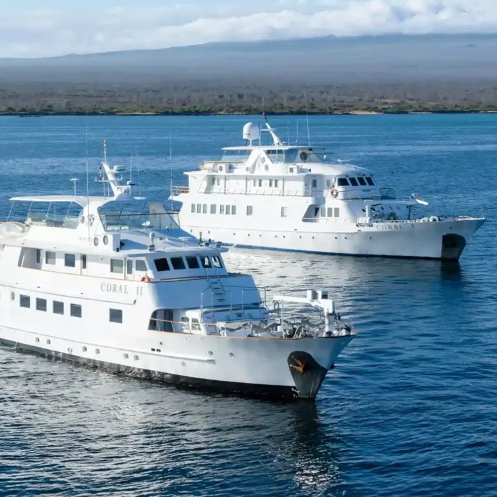 Coral I and Coral II are elegant, comfortable sister yachts designed for travelers seeking a more intimate and personalized Galapagos experience. With capacities of 36 and 20 guests respectively, these vessels provide the perfect balance between charm, adventure, and exclusivity. Spread across three beautifully appointed decks, each yacht features inviting indoor and outdoor social areas—ideal for relaxing, dining, or simply soaking in the island views. Unwind in the open-air Jacuzzi as you cruise between islands, or enjoy a cozy moment in the lounge surrounded by panoramic windows. The interior design evokes the feel of a private yacht, blending warmth and comfort for a relaxed, home-away-from-home ambiance. On board, guests enjoy a culinary journey with a mix of Ecuadorian and international dishes—plus the special treat of a BBQ dinner under the stars on the Moon Deck. Perfect for charter groups, couples, or small gatherings, Coral I and Coral II offer a seamless blend of personalized service, comfort, and Galapagos-style adventure—all in one unforgettable journey.