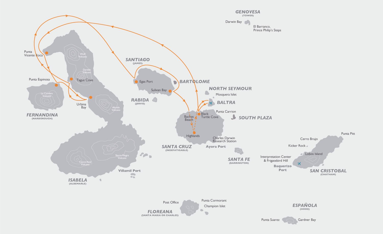 Itineraries are unlikely to change significantly but are subject to change. Weather, wildlife breeding, safety concerns, instructions from the Galapagos National Park, specific abilities, and interests of guests as well as operational matters may cause your guide or captain to change the time or nature of visits. Your guide and captain will always endeavor to select the best itinerary within these limits.